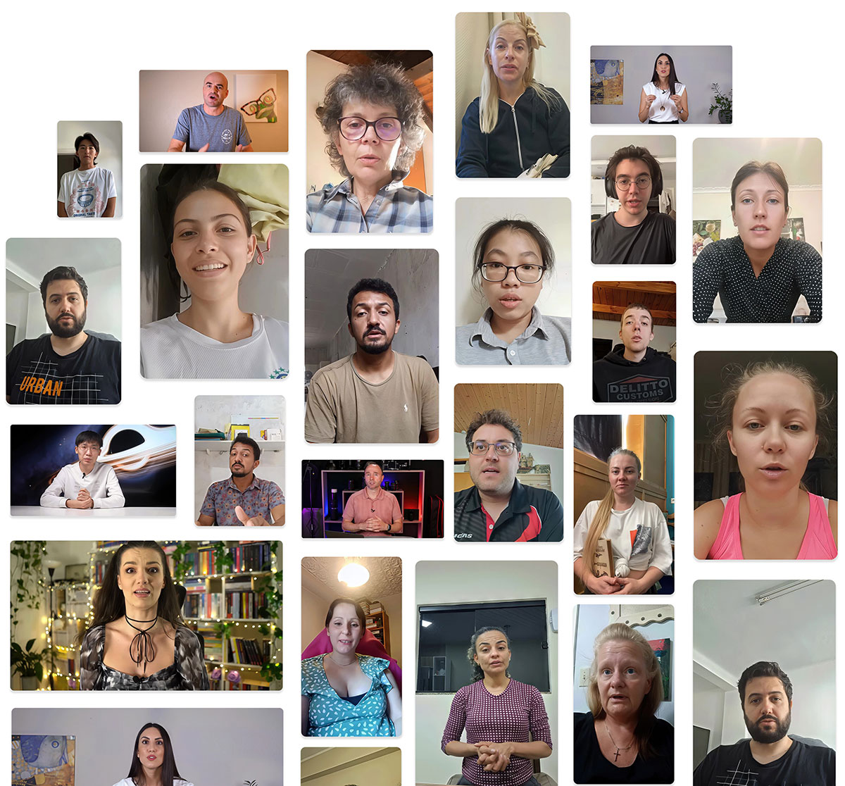 Our avatars are real people filmed on location—teachers, professionals, everyday humans. No synthetic faces. No uncanny valley. Just authentic people digitized for AI-powered video creation.