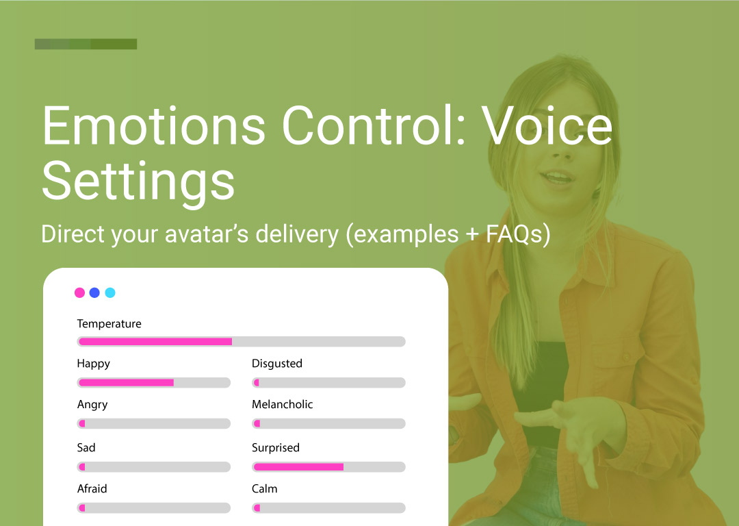 Learn LipSynthesis Emotions Control voice settings to improve avatar delivery. Includes a quick workflow, script templates, and FAQs.