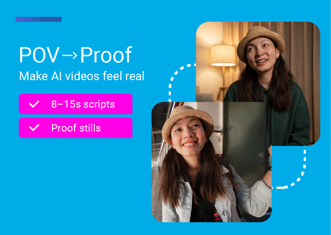 Pair each POV clip with a proof frame that shows the real-life moment behind the hook.