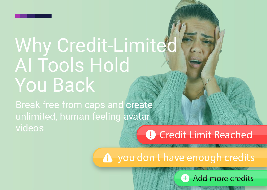 AI avatar videos are everywhere—from TikTok ads to eLearning courses. But most platforms come with a hidden problem: credit limits. You start creating a video, iterate on your script, and suddenly… you're out of credits. Or worse, you hit a paywall mid-project.